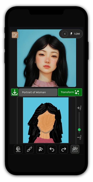 Artemisia enables you to paint your ideas directly, instead of only telling the AI what you want using words. Sentences alone produce randomized results that are often far from your intent. Instead, Artemisia allows you and the AI to work collaboratively to create your masterpiece, with the AI enhancing your brushstrokes to help bring your imagination to life.
